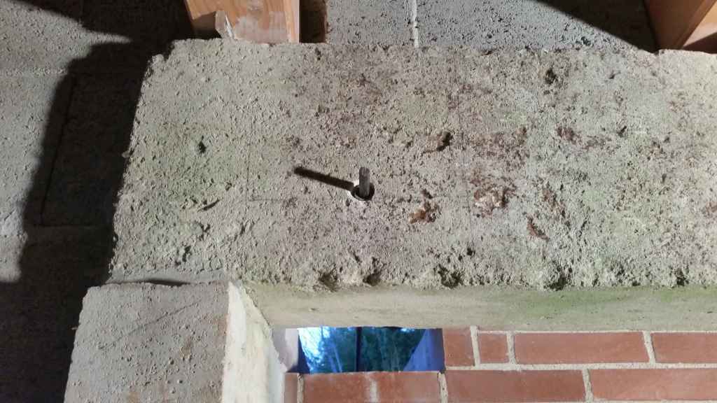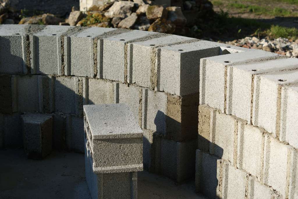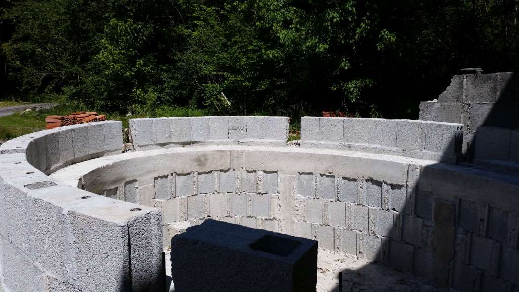 Un rang de parpaings est monté sur cette deuxième ceinture.