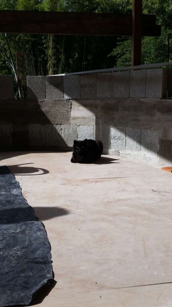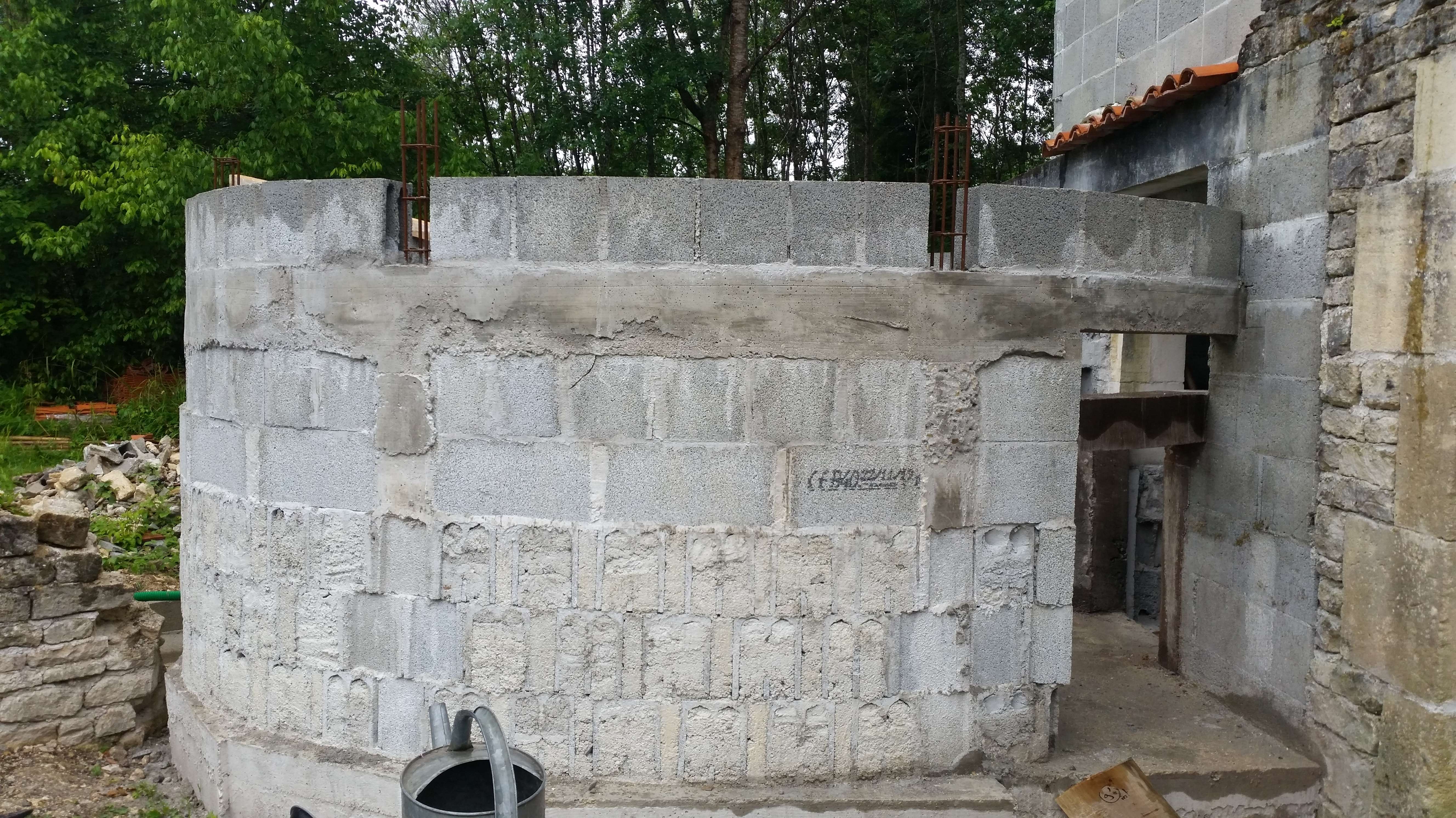 La tour continue son élévation… un nouveau rang de parpaings est monté sur le dernier.