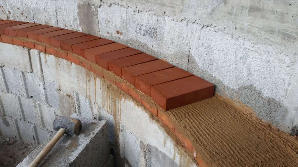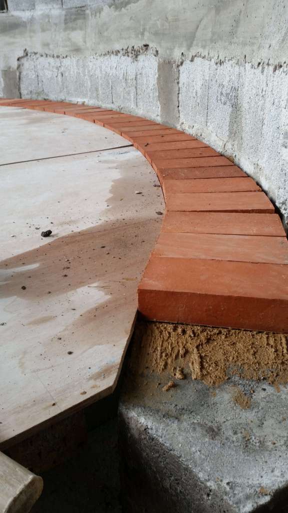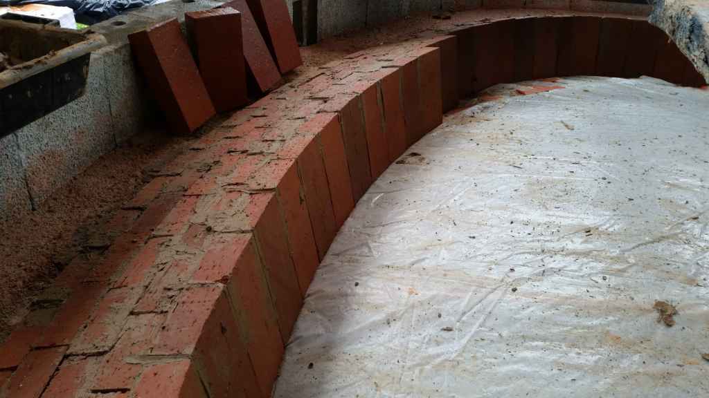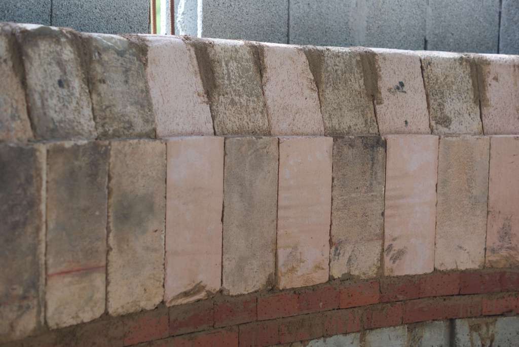 Dans les grandes courbures, en partie courante, les briques ne sont pas retaillées. Dans les petites courbures, cercles au fond du four, les briques sont retaillées en trapèze.