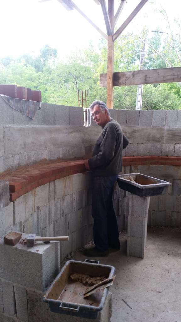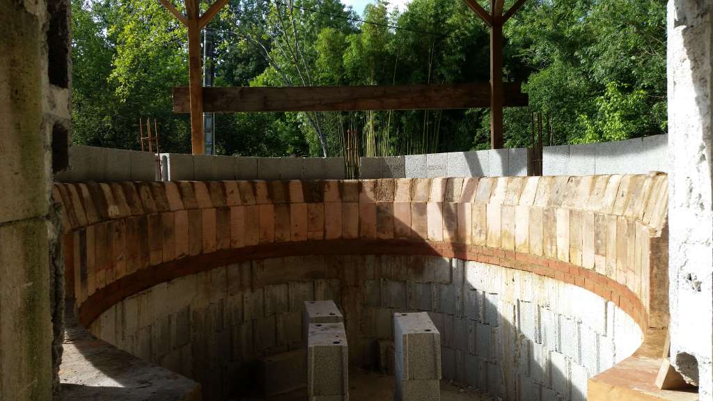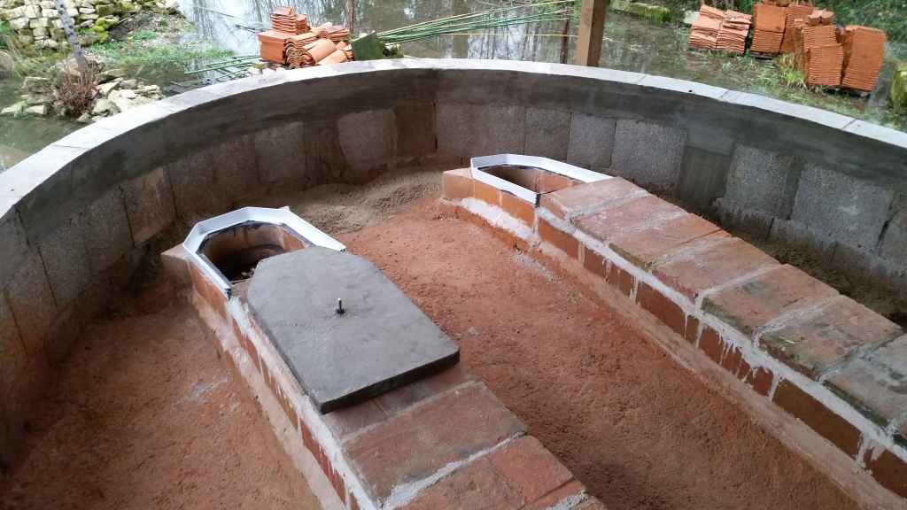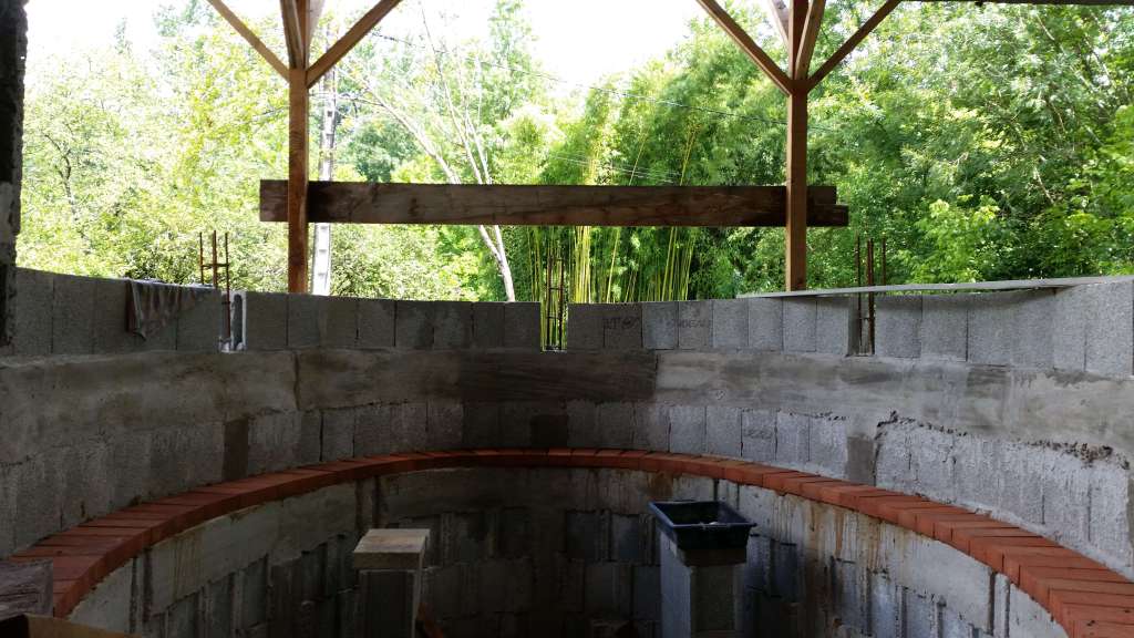 Un rang de parpaings et une dernière ceinture en béton armé sont réalisés sur le pourtour du four pour le maintien général de la structure.