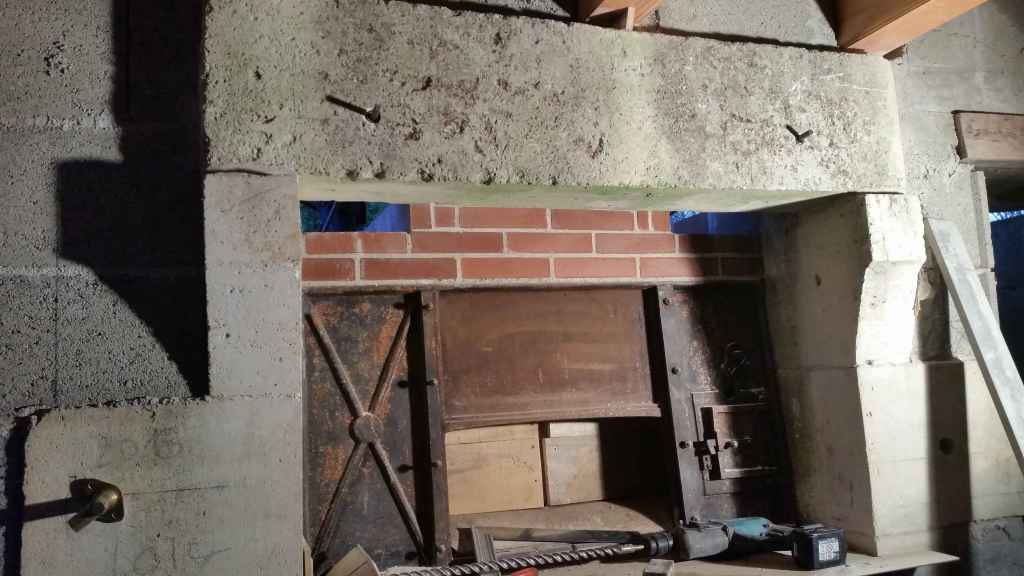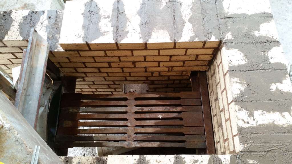 – passage dans le mur pour un conduit d’air, arrivant sous les barreaux, qui permettra d’alimenter le feu en oxygène ;