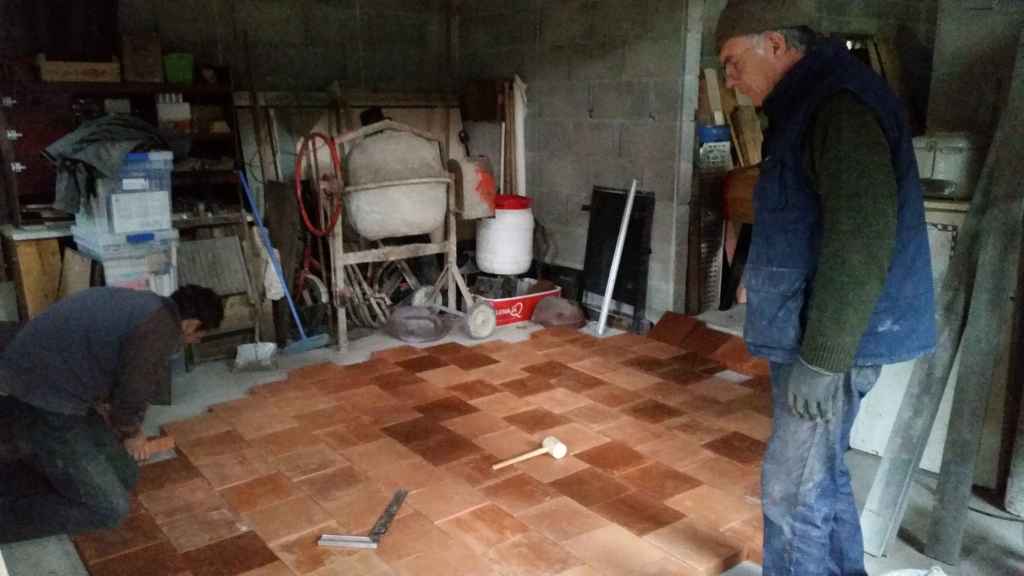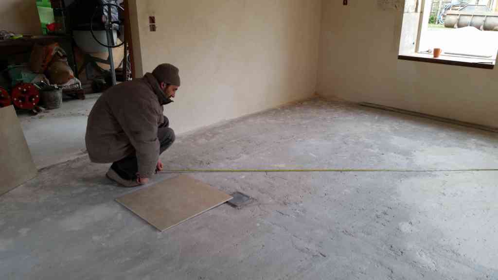 - Fin novembre, nous posons le carrelage avec des carreaux en grès cérame de 60 cm par 60.