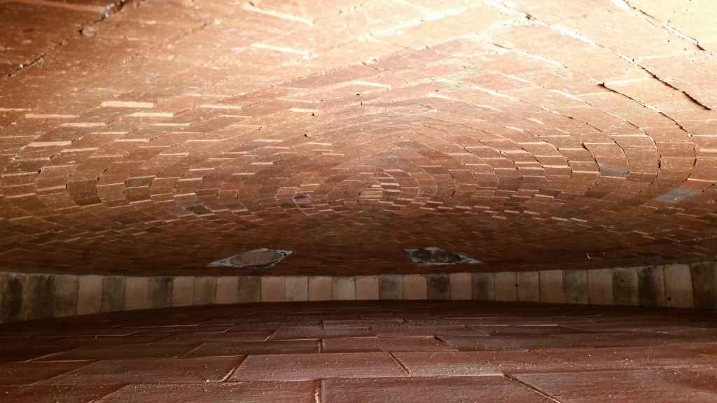 Grande satisfaction de voir notre voûte de l’intérieur ! La chambre du four est prête !