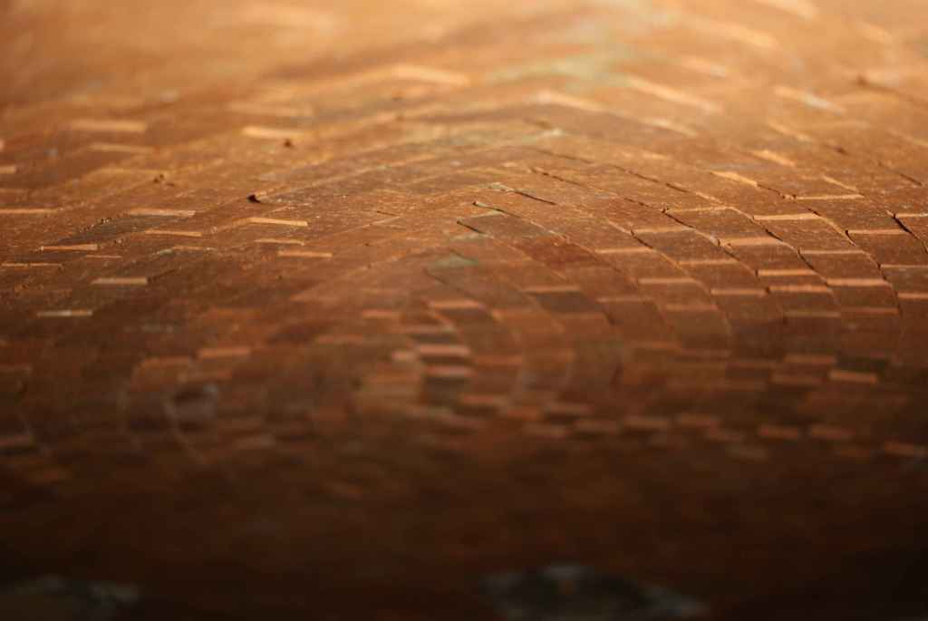 A l’avant du four, derrière la façade, les lignes de briques se croisent en pointe de cœur. Ces dernières sont également taillées en trapèze à l’aide d’une fausse équerre.