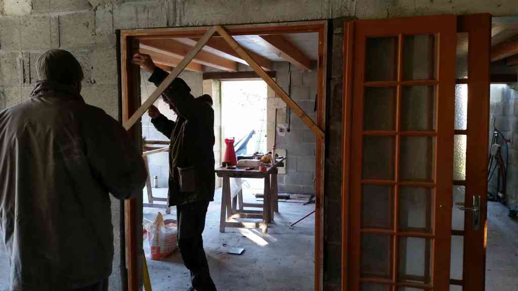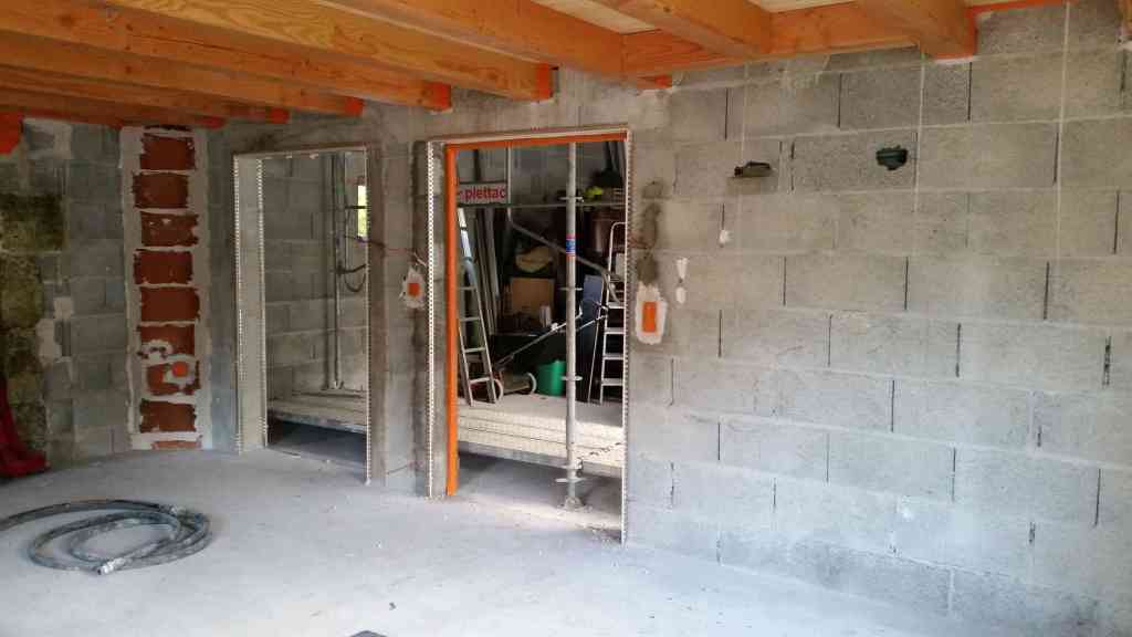 - Mi-novembre, nous faisons faire les enduits des murs intérieurs. Il s’agit d’un enduit chaux-sable gratté.