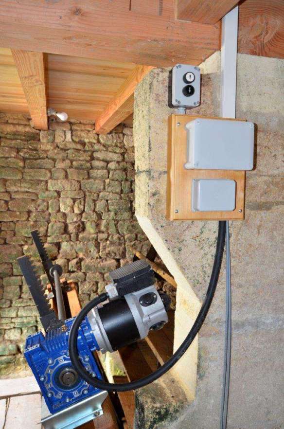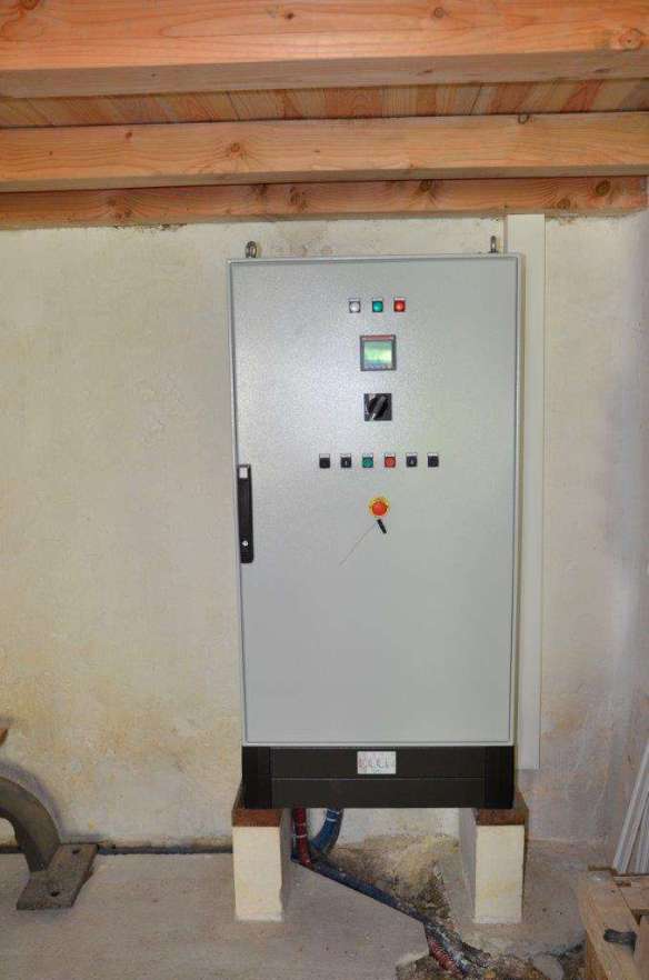 Le courant « brut » produit par la génératrice arrive à l’armoire électrique qui génère du courant « propre ». Cette électricité est autoconsommée, le surplus étant revendue à EDF via un compteur Enedis Linky.