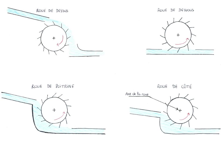 - Roue de côté, en opposition à roue de dessus, de dessous et de poitrine :